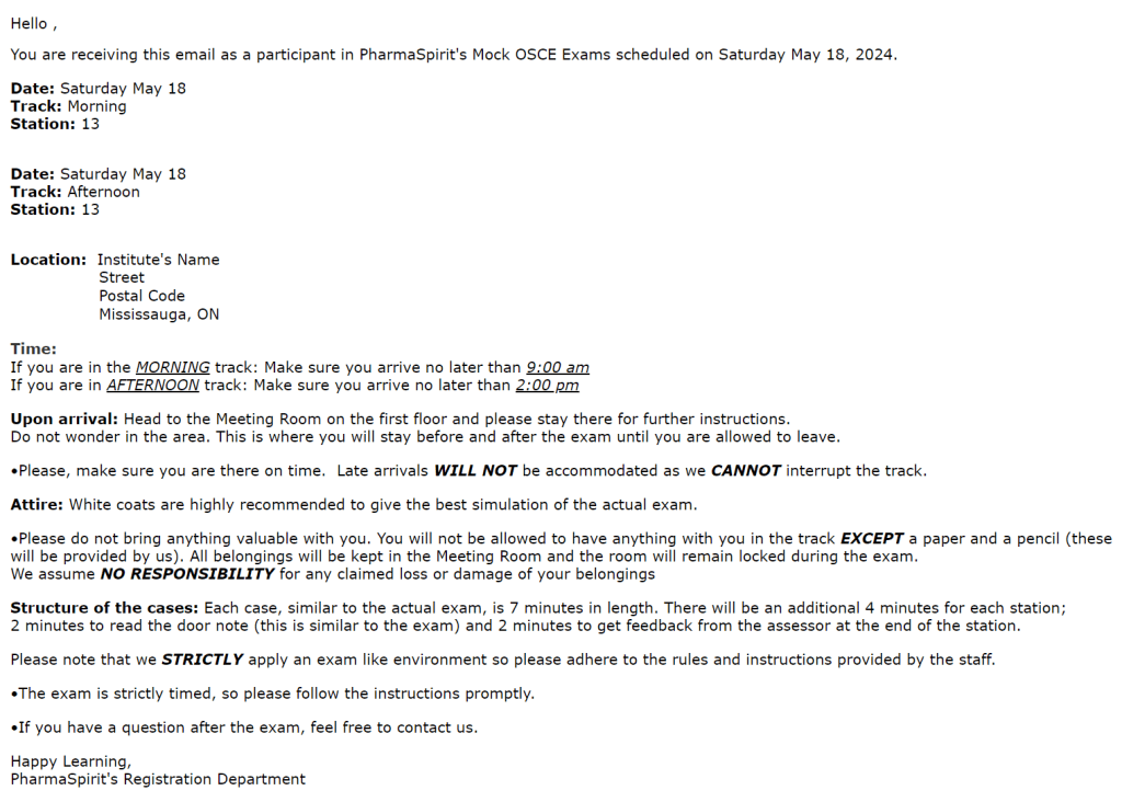 • Email info@pharmaspirit.com to request one mock exam
